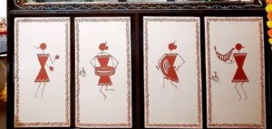 పైన చూస్తున్న చిత్రాలలో రకరకాల వస్తువులతో , రంగులతో బొమ్మలను వేస్తున్నారు. ఆ చిత్రాలనూ, అవి వేసే పద్ధతుల పేర్లనూ తెలుసుకోండి