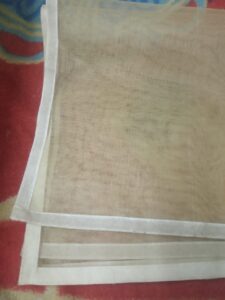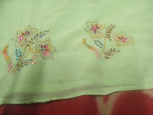 చేతితో జారీ దారాలతో ఎంబ్రాయిడరీ చేస్తారు.దోమతెర లాంటి కాస్త గట్టిగా ఉండే షీట్ నుంచి ఒక కంపెనీ వారు ఇస్తారు. దానికి నాలుగువైపులా వారు ఇచ్చిన మెటీరియల్ తో అంచులు కుట్టి ఆకంపెనీకి అందజేస్తారు. అవి కిటికీలకి అమరిస్తే దోమలు రావు.ఇలా ఇంట్లో కూచుని స్వయం ఉపాధి కి మార్గం ఎంచుకున్నారు ఆమె.ఇద్దరు ఆడపిల్లలు  హైస్కూల్ చదువులు ఇంటిపని తో ఓగృహిణిగా భర్త కి చేదోడు వాదోడుగా ఉంటున్న చైతన్య హైదరాబాద్ నివాసి
