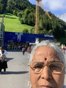 వైదేహి ఇవన్ని వివరిస్తూ చలి ఎక్కువగా ఉంటుంది కాబట్టి తగిన జాగ్రతలు తీసుకోవాలని చెప్పింది. నిన్న యంగ్ఫ్రావ్యోచ్ పైన నాకు తలతిరిగినట్టుగా ఇక్కడ అవుతుందని భయపడ్డాను. కాని పొద్దుట కాస్త హెవీగానే బ్రేక్ఫాస్ట్ చేయడం వల్ల అంతగా బాధపడలేదు. కేబుల్ కార్ లో పైకి వెళ్ళి చూస్తే, ఎక్కడ చూసినా మంచు. అందరూ ఫోటోలు తీసుకుంటూ ఎంజాయ్ చేసారు. అక్కడ దిల్వాలే దుల్హనియా లేజాయింగే లోని కారెక్టర్స్ కాజోల్ షారుఖ్ ల నిలువెత్తు కట్అవుట్స్ పెట్టారు. దాని పక్కన నిలుచుని అందరూ ఫోటోలు తీసుకున్నారు. చల్లటి గాలి చర్మాన్ని మంట పుట్టించింది. మాస్క్ లతో ముఖం కప్పుకున్నాము. అక్కడనుంచి క్లిఫ్ వాక్ సస్పెన్షన్ బ్రిడ్జ్ దగ్గరికి వెళ్ళాము. రెండు ఎత్తైన శిఖరాల మధ్య వేయబడిన ఇనుప నెట్ తో తయారు చేయబడింది. పక్కనున్న ఇనుప తాళ్ళను పట్టుకోని నడిచాము. అందరి నడక అదుపుకు వంచన ఊగి కొంచెం భయం కలిగిస్తుంది. నెమ్మదిగా పట్టుకుని నడిచాను. మేము వంతెన మధ్యలో ఉండగా ఒక కొంటె కుర్రవాడు రెండువైపుల ఉన్న తాళ్ళను పట్టుకుని గట్టిగా ఊపటం మొదలు పెట్టాడు. అందరం కదిలి పోయాము. అంతా పెద్దగా కేకలు పెట్టారు. అందరూ ఆ అబ్బాయిని గదమాయించటం వల్ల ఊపటం ఆపాడు. మెల్లిగా 100 మీటర్ల పొడవున్న వంతెన ఆ చివరికి చేరుకున్నాము. ఎవరికి వారు వారి వారి కుటుంబాలతో విడివిడిగా తిరుగుతున్నారు. ప్రణయ్ ఎక్కడున్నాడో కనబడలేదు. కొత్తగూడెం పిల్లలతోనే ఎక్కువగా తిరుగుతున్నాడు. అందరూ దాదాపు ఒకే ఈడు వాళ్ళు. సహజం కదా. నేను ఒంటరిని అయి పోయాను. అయినా జ్యోతి, వాళ్ళ అమ్మగారు జూలీ నాతోనే ఉండటం కొంత సంతోషంగా అనిపించింది. మొదటినుండి జ్యోతి, నన్నూ వాళ్ళ అమ్మగారితో పాటు తీసుకెళ్ళుతుండటం, వాళ్ళతో పాటు నాకేం కావాలో చూడటం నాకు సంతోషం కలిగించింది. జూలీ గారితో మంచి స్నేహం ఏర్పడింది. మొదట ప్రణయ్ కి అమ్మమ్మని కాబట్టి అంతా దాది అని పిలిచినా తరువాత జ్యోతి మాత్రమే ఆంటీ అని, మిగిలిన అందరూ మేడమ్ అని పిలవటం మొదలు పెట్టారు. అక్కడ టికెట్ కౌంటర్ లో జ్యోతి మా ముగ్గురికి టికెట్స్ తీసుకుంది. కాస్త పక్కగా ఒక ఊయల లాగా ఉన్న సోఫాలో కూచున్నాము. అక్కడనుంచే పర్వతపు అందాలు చూడాలేమో ననుకున్నాను. ఒక్కసారిగా జుయ్ మంటూ ఆ ఊయల పర్వతపు అంచులవేపు బయలుదేరింది. అనుకోని ఆ ప్రయాణం వల్ల గుండే ఒక్కసారిగా కొట్టుకోవటం ఆగిందనిపించింది. జ్యోతి టికెట్స్ తీసుకున్నది దీనికోసమేనని అప్పుడర్థమయింది. అదే 360° తిప్పే కేబుల్ కార్ అయిన టిట్లిస్ రోటైర్. చూస్తుండగానే మేము ముగ్గురం కూచున్న ఆ సోఫా ఊయల కిందికి దూకుడుగా బయలుదేరింది. భయంకరంగా అనిపించింది. మాముందు పట్టుకోవటానికి ఉన్న హాండిల్ తప్ప ఏ ప్రొటెక్షన్ లేదు. నా భయాన్ని బయటకు ప్రదర్శించకుండా హాండిల్ గట్టిగా పట్టుకు