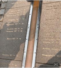 ఆ రేఖ మీద రెండు వేపులా చెరో కాలునుంచి నిలుచుని పొటోలు దిగుతున్నారు జనాలు. అంటే భూమిపై ఒకకాలు తూర్పు గోళం మీద, మరోటి పడమటి గోళం మీద నిలబడి నట్టుగా. భూమి మీద ఉన్న జీరో డిగ్రీ రేఖాంశం చూడ్డం, దానిమీద నిలబడడం ఎంతో ఆనందం, ఉద్వేగం కలిగింది. ఆ రేఖ రెండువేపుల ఆ వేపున ఉన్న దేశాలు, ఆ రేఖ నుండి ఆ యా దేశాల కాలమానాలు రాయబడి ఉన్నాయి.