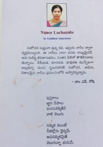 పుస్తకావిష్కరణ సభలో ‘నానీ లోచనాలు’ పుస్తకంతో ఇల్లు చేరి సమీక్ష రాయాలనుకున్నా కారణాంతరాలతో జరిగిన జాప్యమిది.