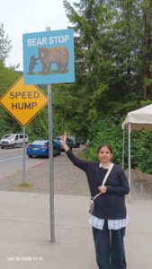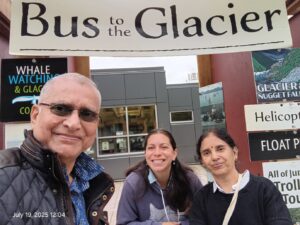 క్రూజ్ నుండి దిగిన తర్వాత 1 1/2 కిలోమీటర్స్ దూరంలో tour బుక్ చేసుకోవడానికి సౌకర్యం ఉంది . గండోలా టూర్, వేల్ వాచింగ్, మెండన్ హాల్ గ్లేసియర్ బుక్ చేసుకోవడానికి ఛాన్స్ ఉంది. కానీ ఇక్కడ గండోల రైడ్ , వేల్ వాచింగ్ చాలా ధర ఎక్కువ . ఈ Whale Watching ను Ketchikan లో చూసేసాము. గండోల రైడ్ చాలా ఎక్స్పెన్సివ్ గా ఉంది. అందుకే అది తీసుకోలేదు. మెండన్ హాల్ గ్లేసియర్ చూడ్డానికి బుక్ చేసుకుందామని ఒక టూర్స్ అండ్ ట్రావెల్స్ దగ్గరికి వెళ్ళాము. అక్కడ “బస్ టు ది గ్లేషియర్ ” ట్రావెలర్ దగ్గర బుక్ చేసుకోవడానికి వెళ్ళాము. ఆమె చాలా సాదరంగా రిసీవ్ చేసుకుంది. నన్ను చూసి నమస్తే అన్నది. అయితే ఈమెకు ఇండియా గురించి అవగాహన ఉన్నదని మాకు అర్థం అయిపోయింది. “ఇండియాలో ఏ ప్లేస్ లో ఉన్నారని” మేము మాటలు కలిపాం.ఆమె “మైసూర్లో యోగా నేర్చుకునేదని” చెప్పింది.